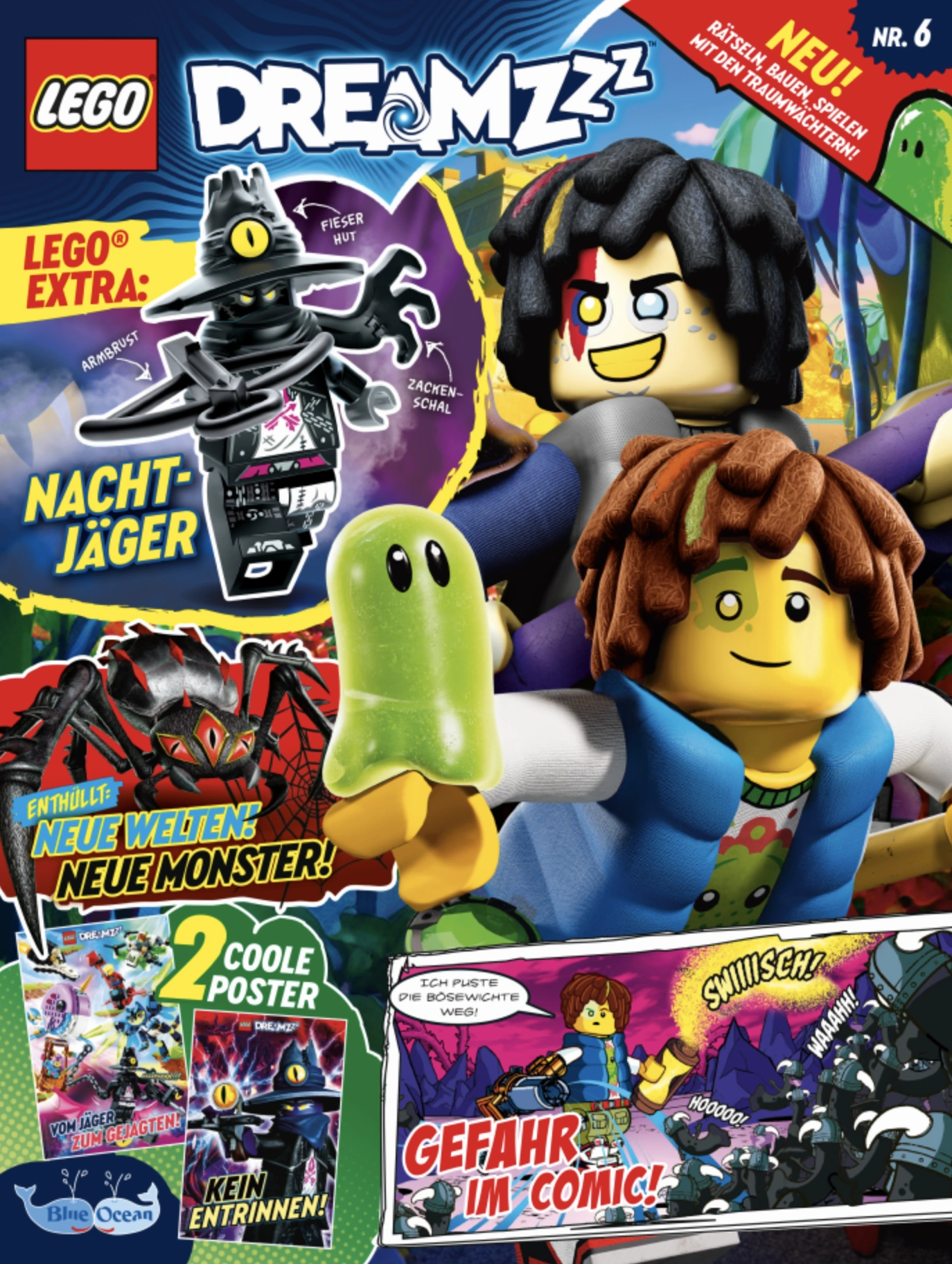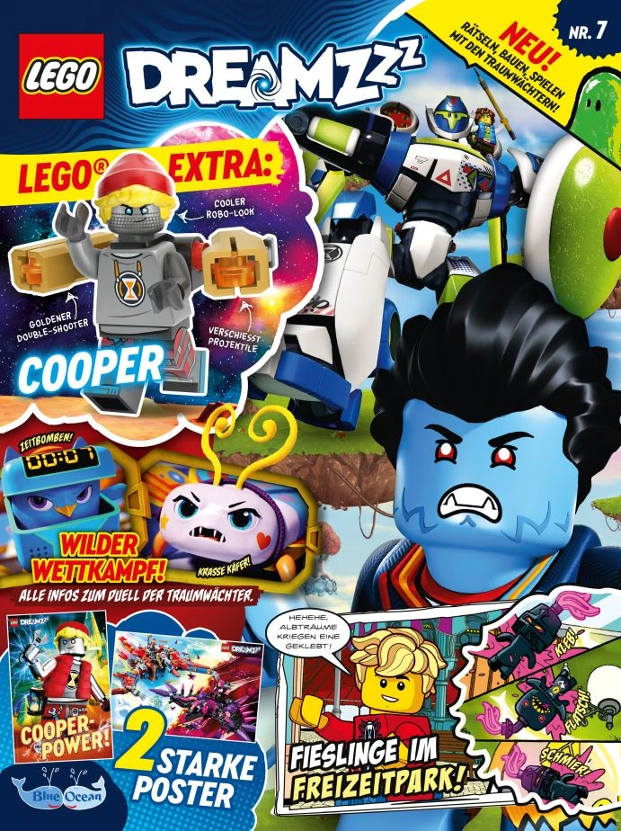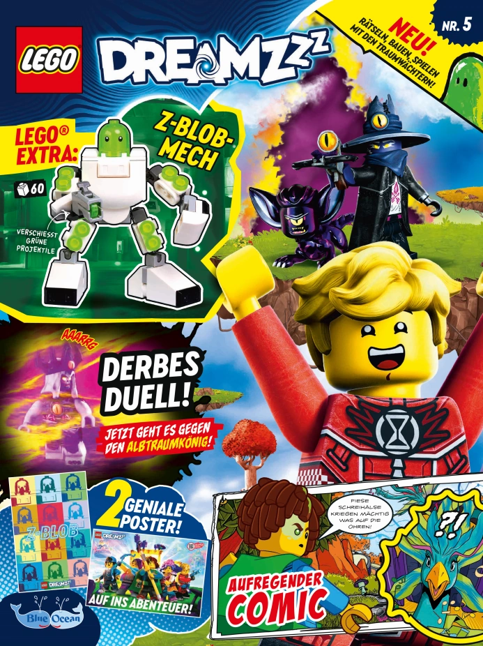 Bei dem neuen LEGO® DREAMZzz™ Magazin begleitest du Traumjäger Mateo und seine Freunde bei ihren waghalsigen Abenteuern durch aufregende und atemberaubende Traumwelten. Neben spannenden Comics, coolen Postern und kniffligen Rätseln, gibt es zu jeder Ausgabe ein original LEGO DREAMZzz Extra zum Sammeln, Spielen und Spaß haben. Der Fantasie sind keine Grenzen gesetzt in der neuen, einzigartigen (Traum-)Welt von LEGO DREAMZzz.[2]