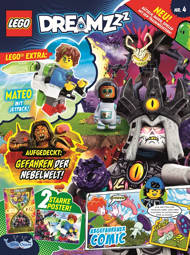 Im neuen LEGO® DREAMZzz Magazin begleiten die Kinder den 13-jährigen Traumjäger Matteo und seine Freunde bei ihren waghalsigen Abenteuern durch aufregende und atemberaubende Traumwelten. Neben spannenden Comics, coolen Postern und kniffligen Rätseln, gibt es zu jeder Ausgabe ein original LEGO® DREAMZzz Extra zum Sammeln, Spielen und Spaß haben. Der Fantasie sind keine Grenzen gesetzt in der neuen, einzigartigen (Traum-)Welt von LEGO® DREAMZzz.[1]