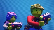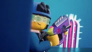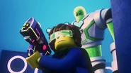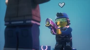 Mithilfe eines Schusses aus seiner traumgeformten Laserpistole stieß der Neuling, den Mateo und Izzie zu einem Traumwächter ausbilden wollten, eine Übungsfigur um.